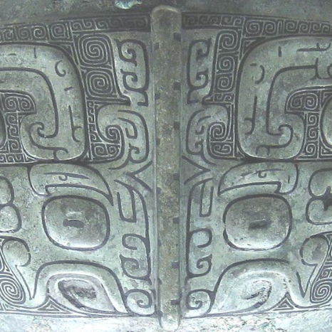 Durante la dinastía Zhou se produjo una evolución tanto desde el punto de vista morfológico como decorativo con la aparición de formas zoomorfas, dichas modificaciones tendrán repercusión tanto desde el punto de vista iconográfico como decorativo. Así, los motivos principales como el taotie, el dragón, el pájaro…aparecen sobre fondos sin decoración, exentos del horror vacui característico del periodo anterior. Así pues, la máscara taotie ha desaparecido en favor de un patrón de meandros ondulados, carente de función simbólica aparente, que rodean la vasija completa.